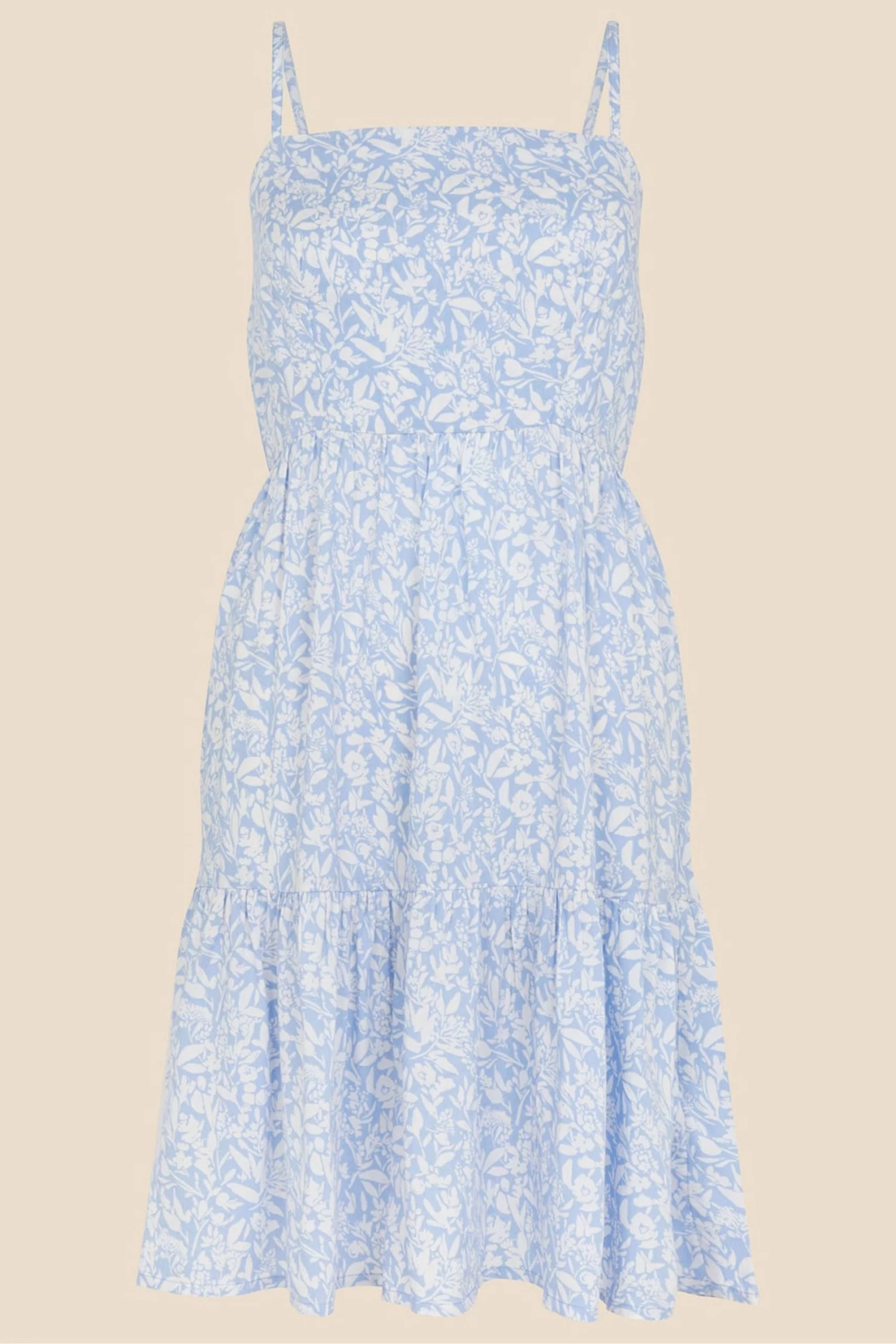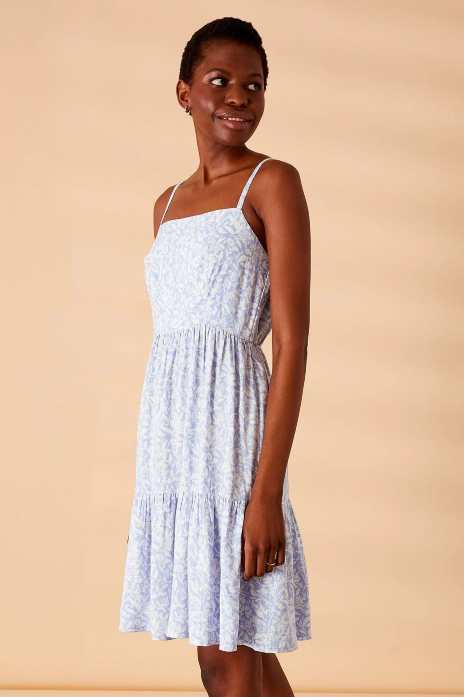 Perfect for daytime dressing: this ditsy mini dress is your new summer staple. It is designed in soft flowy material that will catch the breeze and keep you cool on those long hot summer days, with a stretchy waistband for comfort. Finished with a square neck, tiered hem and adjustable straps, style it with your favourite white trainers for a cute and casual look. LENZING™ ECOVERO™ is a sustainable fabric derived from certified renewable wood sources and made using eco-responsible production methods. It generates up to 50% lower emissions and water impact than traditional viscose, contributing to a cleaner environment.