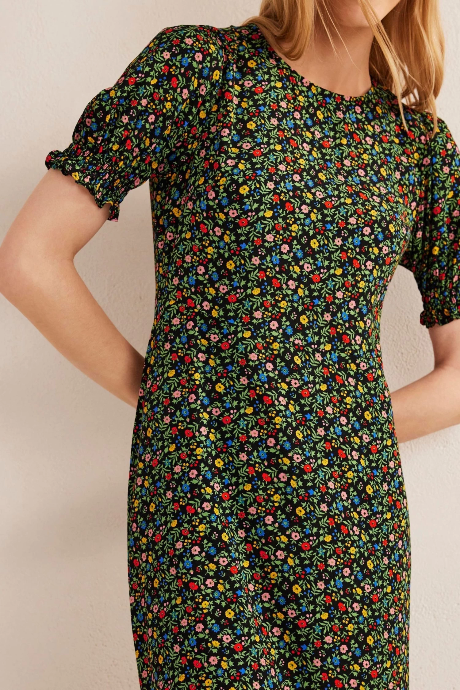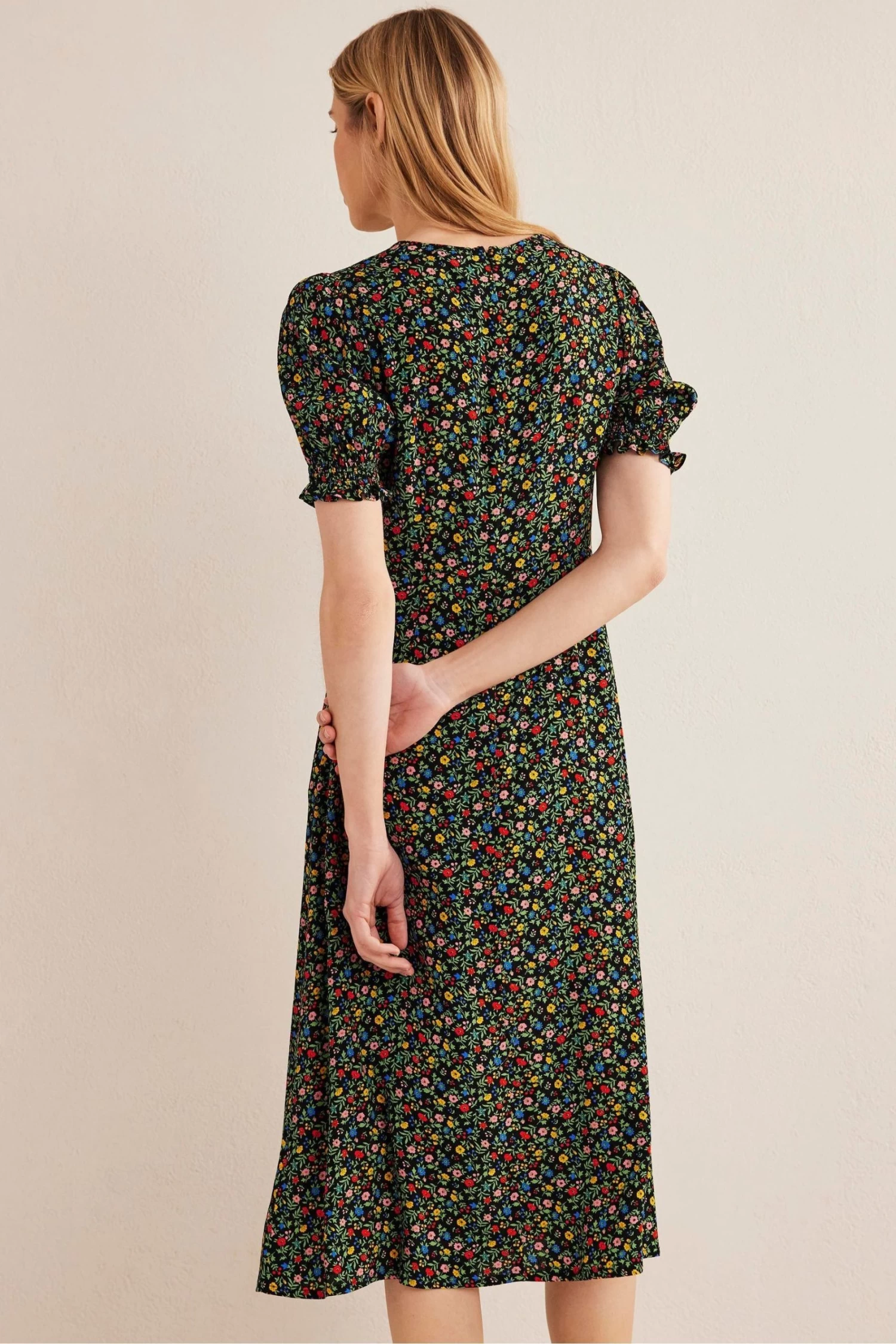 Smocked cuffs and a figure-skimming bias-cut give this midi dress a point of difference. Show it off from AM to PM.