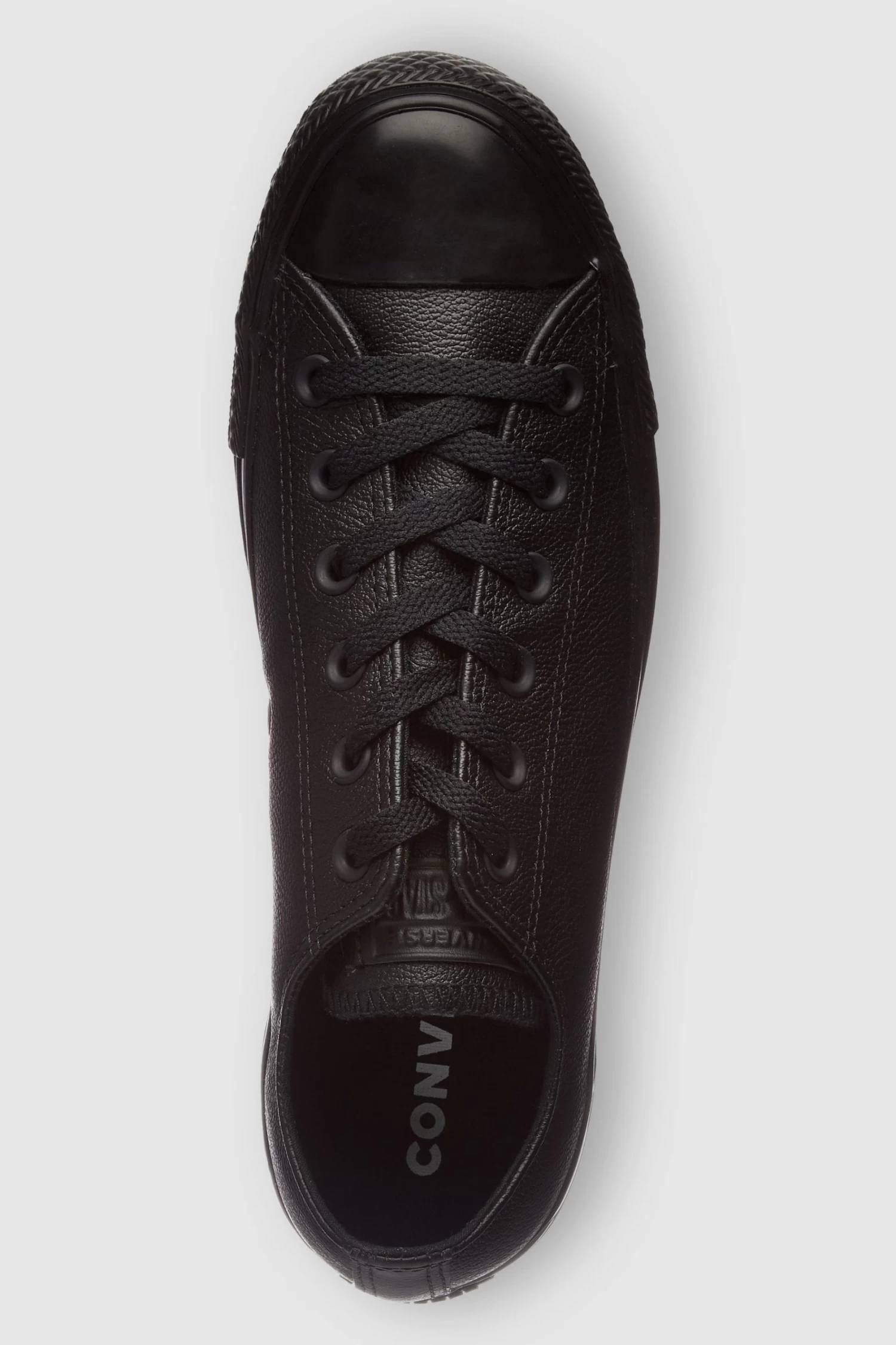 LEATHER ICON. The legend since ’57, when basketball players gave their high tops a chop. Essential elements like a woven “All Star” tongue label and diamond pattern outsole still make the cut. A tonal, faux leather upper updates the classic design for a more premium look and feel. With an OrthoLite® sockliner to help keep it comfortable. Iconic silhouette with rubber toe bumper and toe cap. Diamond pattern outsole.