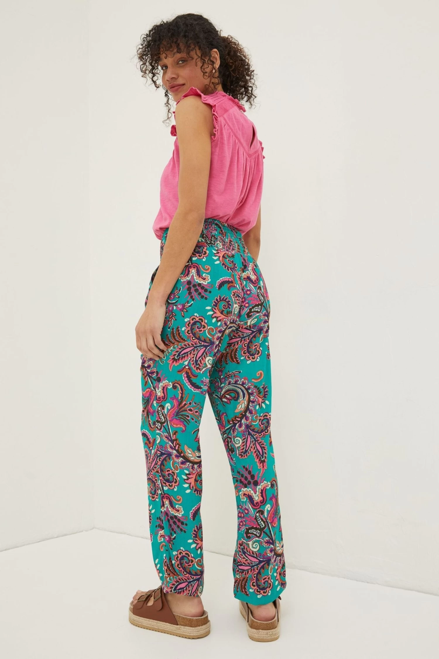 FatFace Green Festival Shirred Trousers