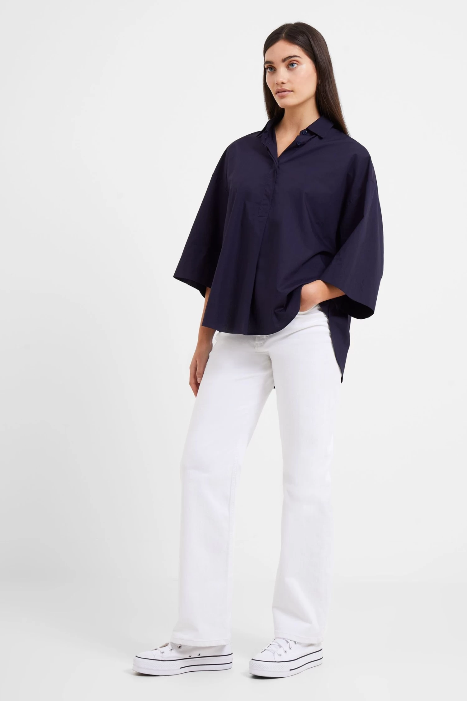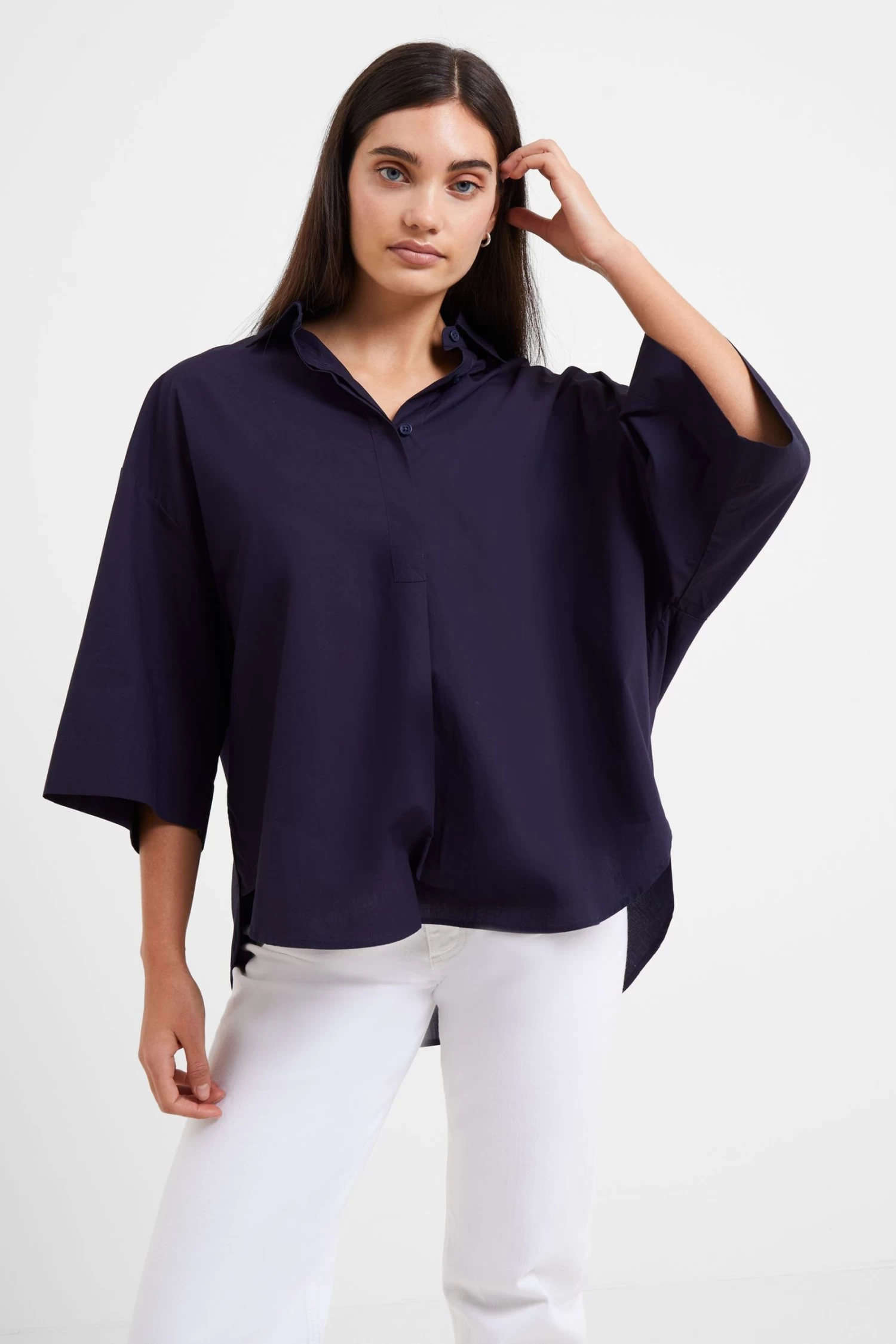 French Connection Blue Rhodes Sust Poplin Shortsleeve Popover Shirt