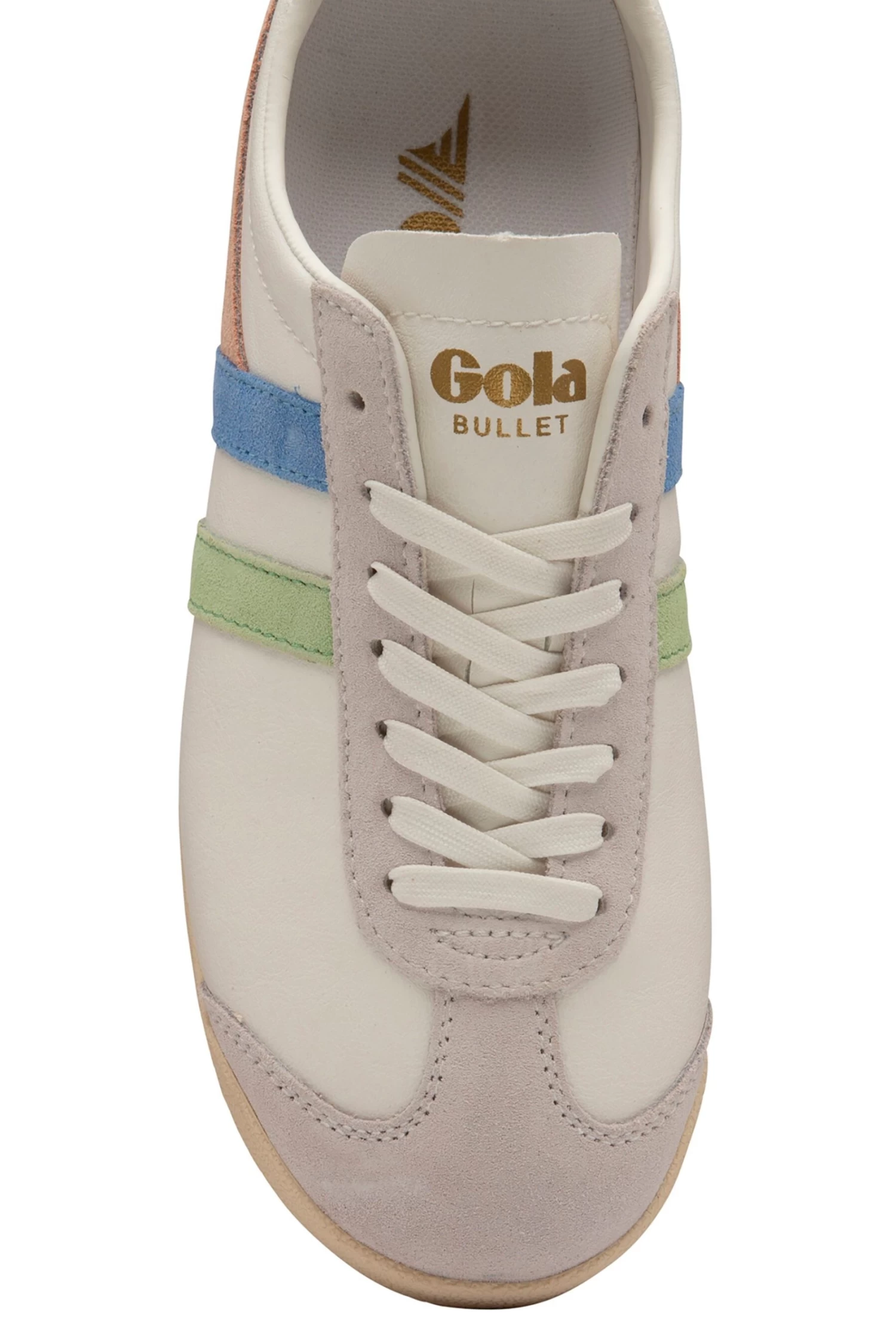 This Gola trainer is season relevant with its soft colour highlights. This eye-catching women’s trainer incorporates patina green and vista blue panels to give a current and fresh look to the 1976 original Gola classic.