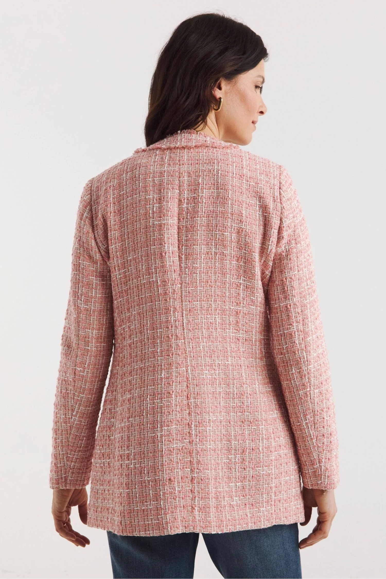 JD Williams Pink Rose Boucle Collarless Blazer