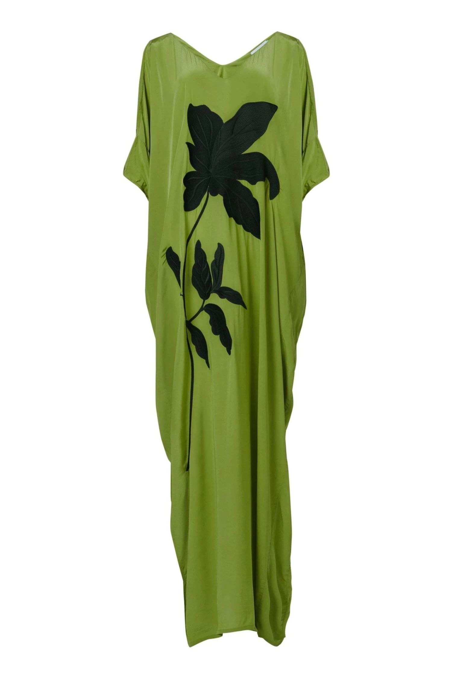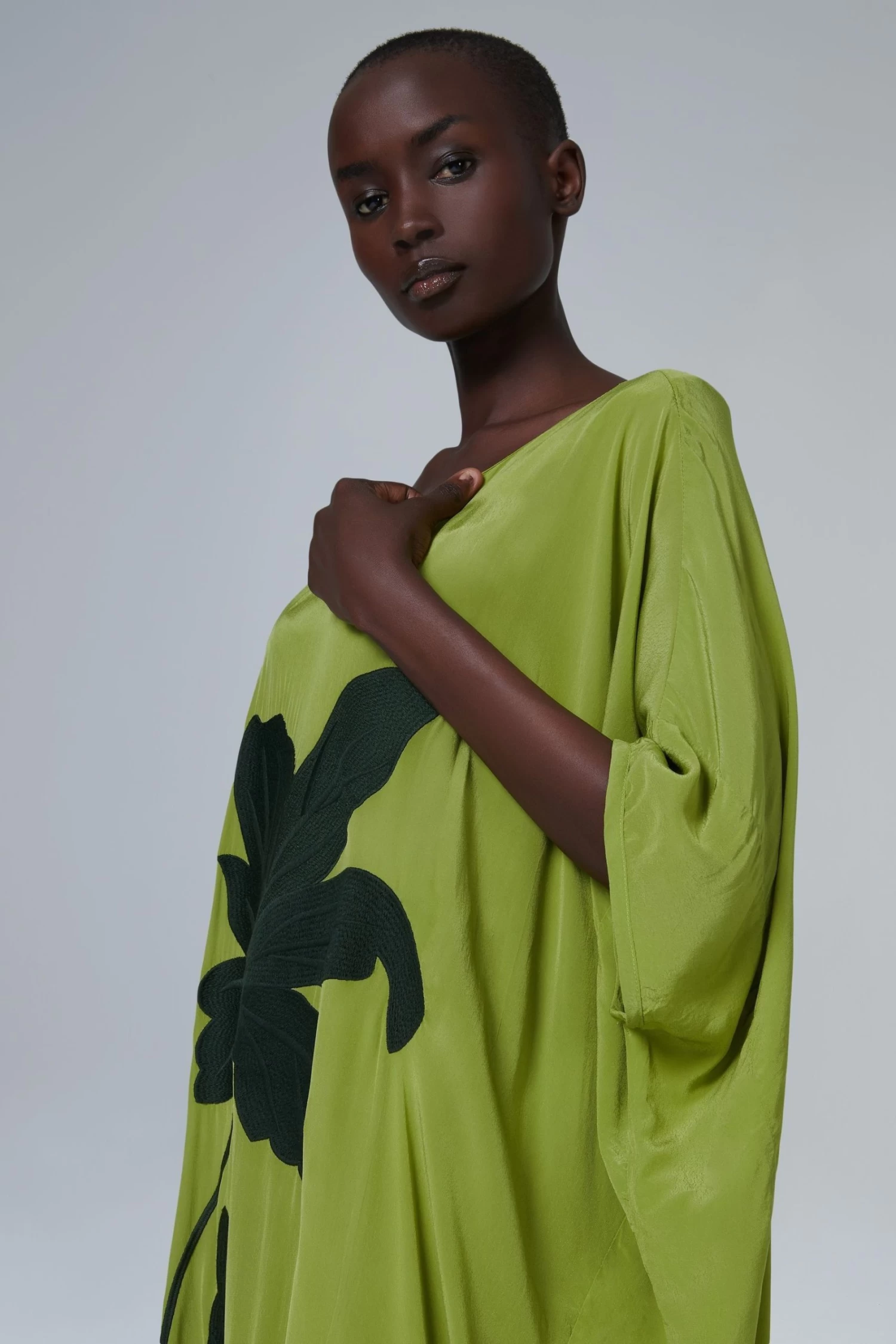 The design boasts an effortlessly flowy silhouette with dropped shoulders and a relaxed v-neckline. Made from soft viscose, it s detailed with floral embroidery. Plexi pumps will complete the look with a contemporary edge. This piece fits true to size. We recommend you select your regular size. – Lightweight, non-stretchy fabric – Cut for a relaxed fit – The model is 180 cm/ 5’9″ and wears size 6 – Wearing length 140 cm measured from higher shoulder point to hem.