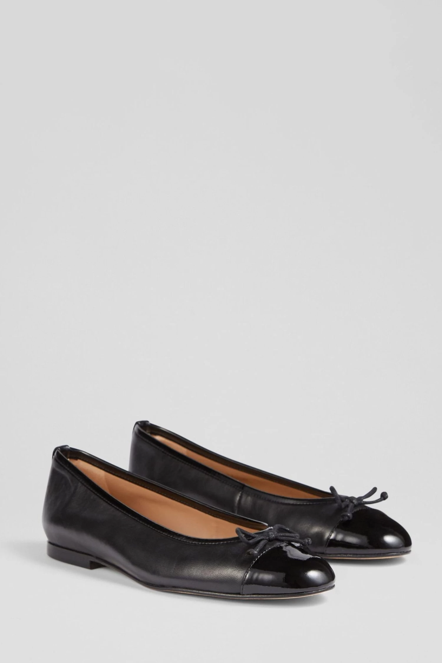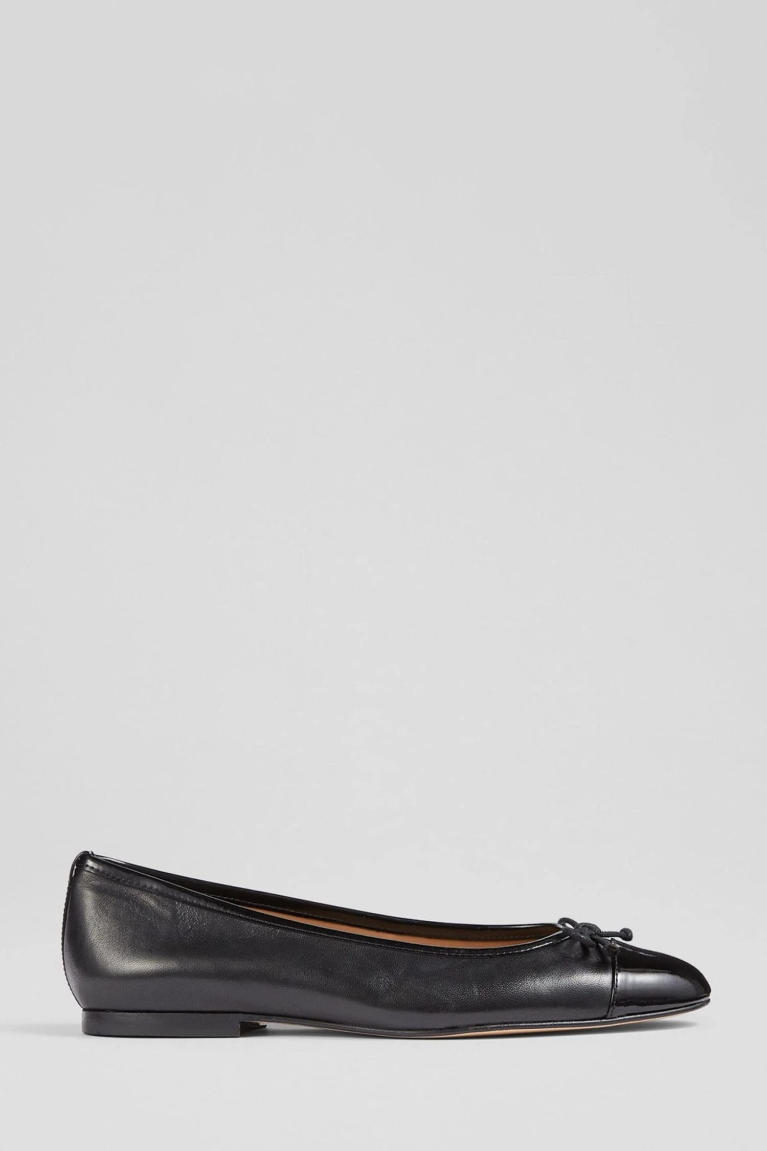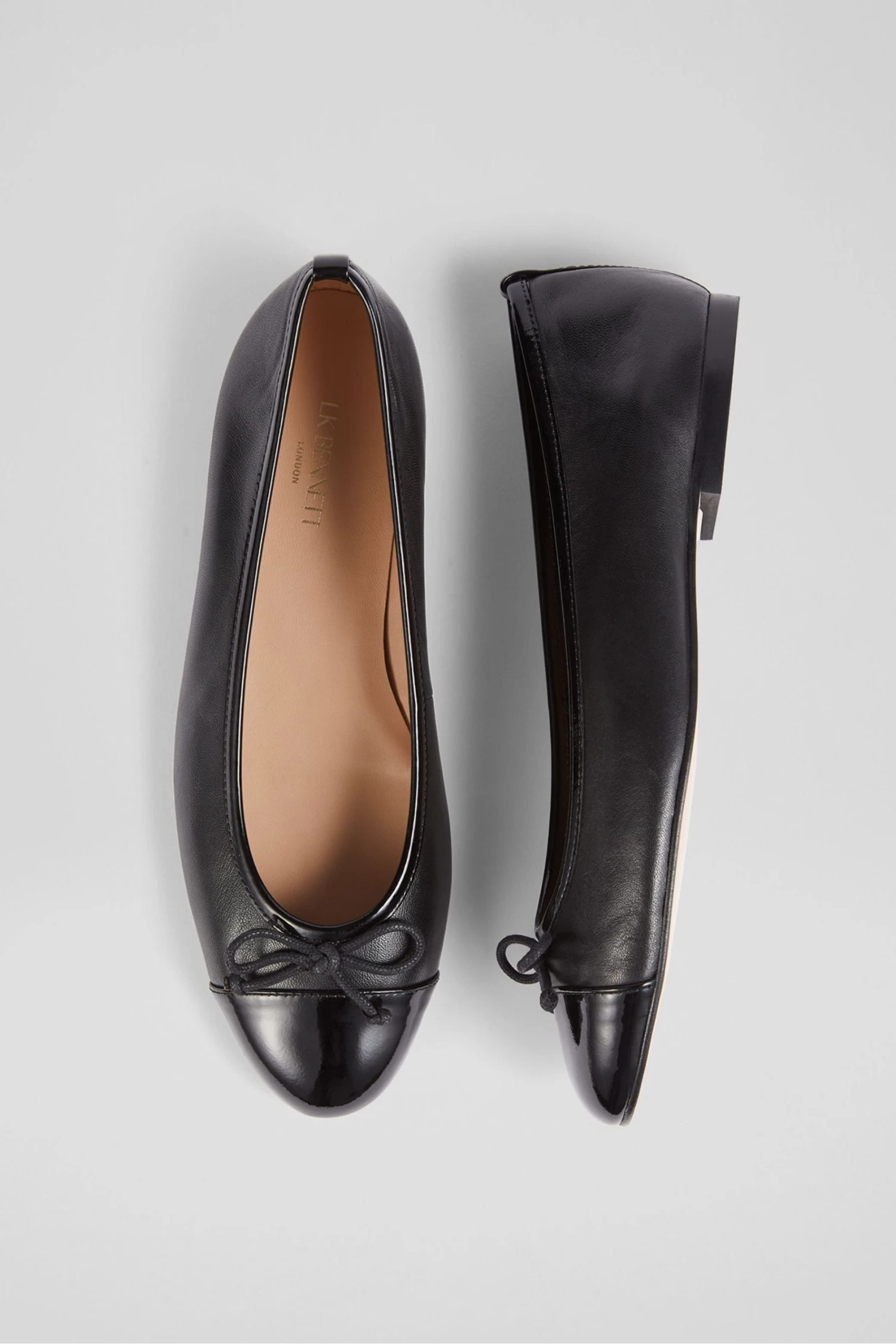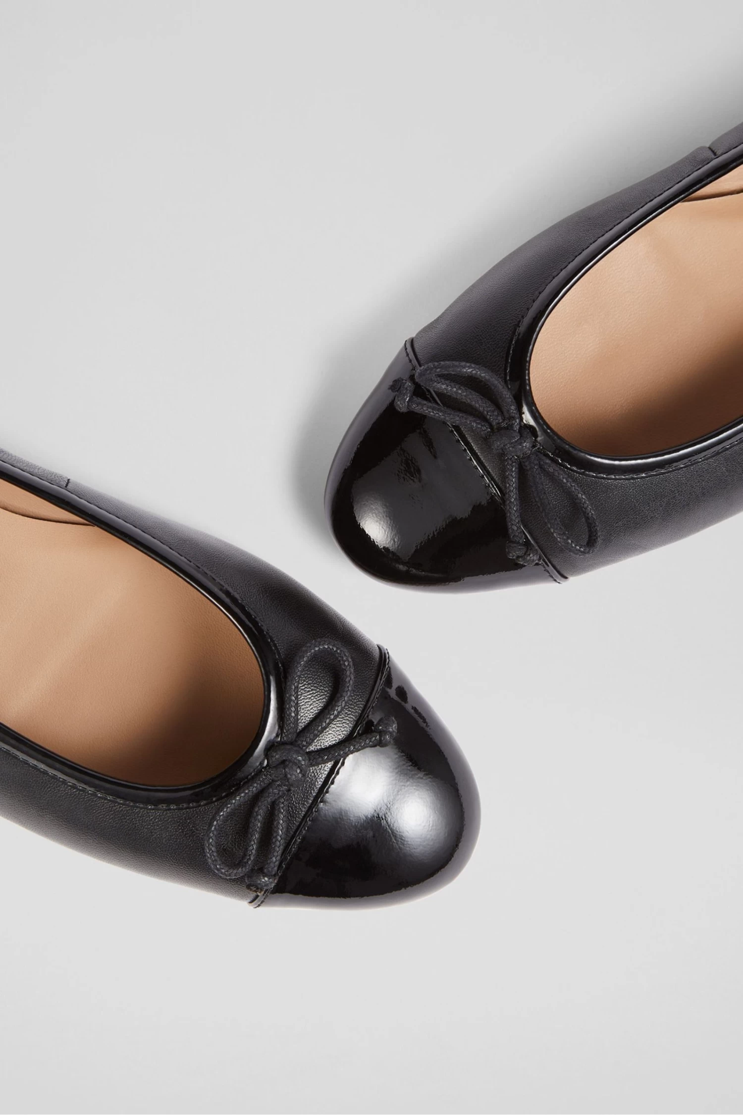 LK Bennett Kara Black Leather And Patent Toe Cap Ballerina Flats