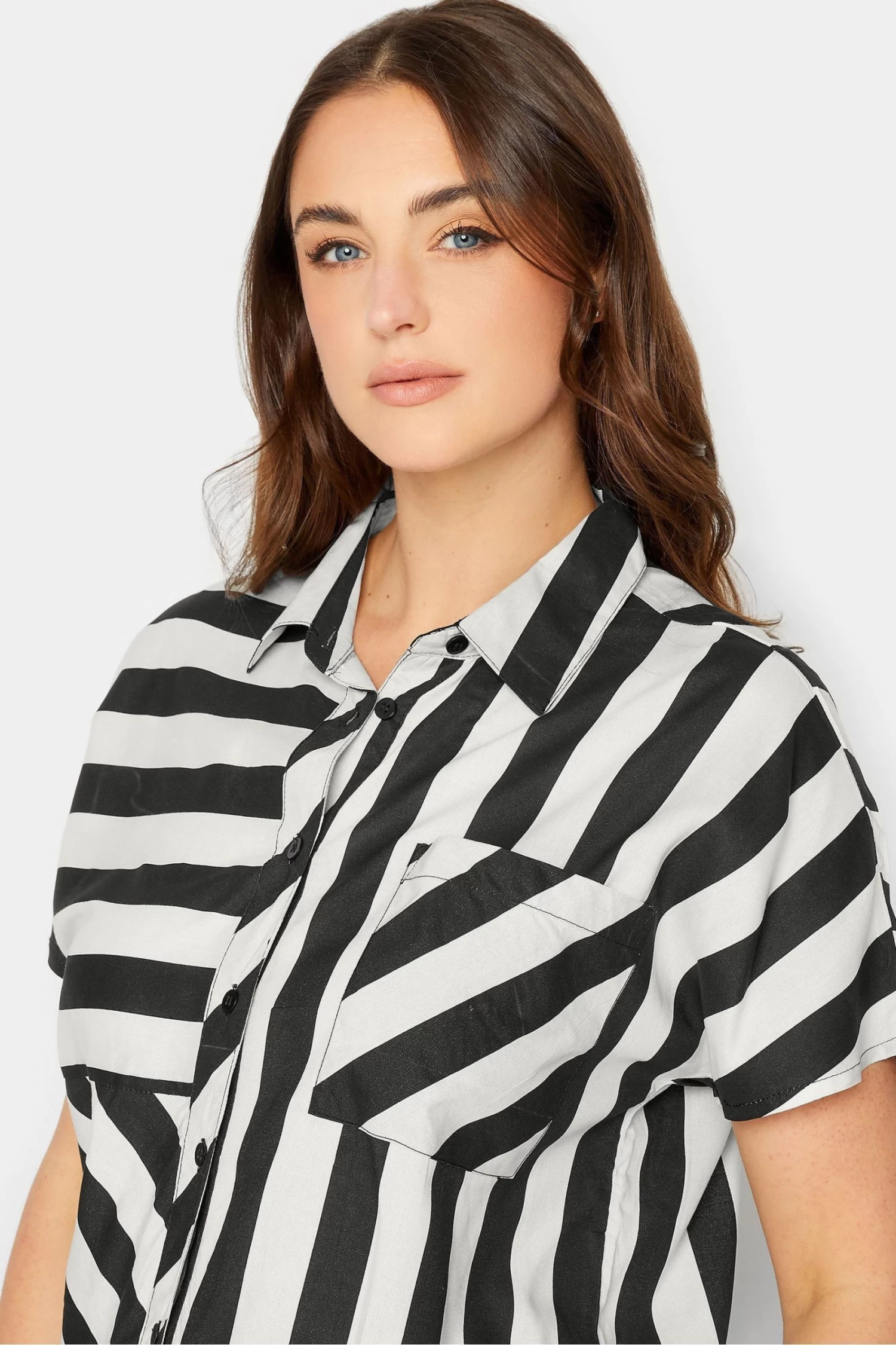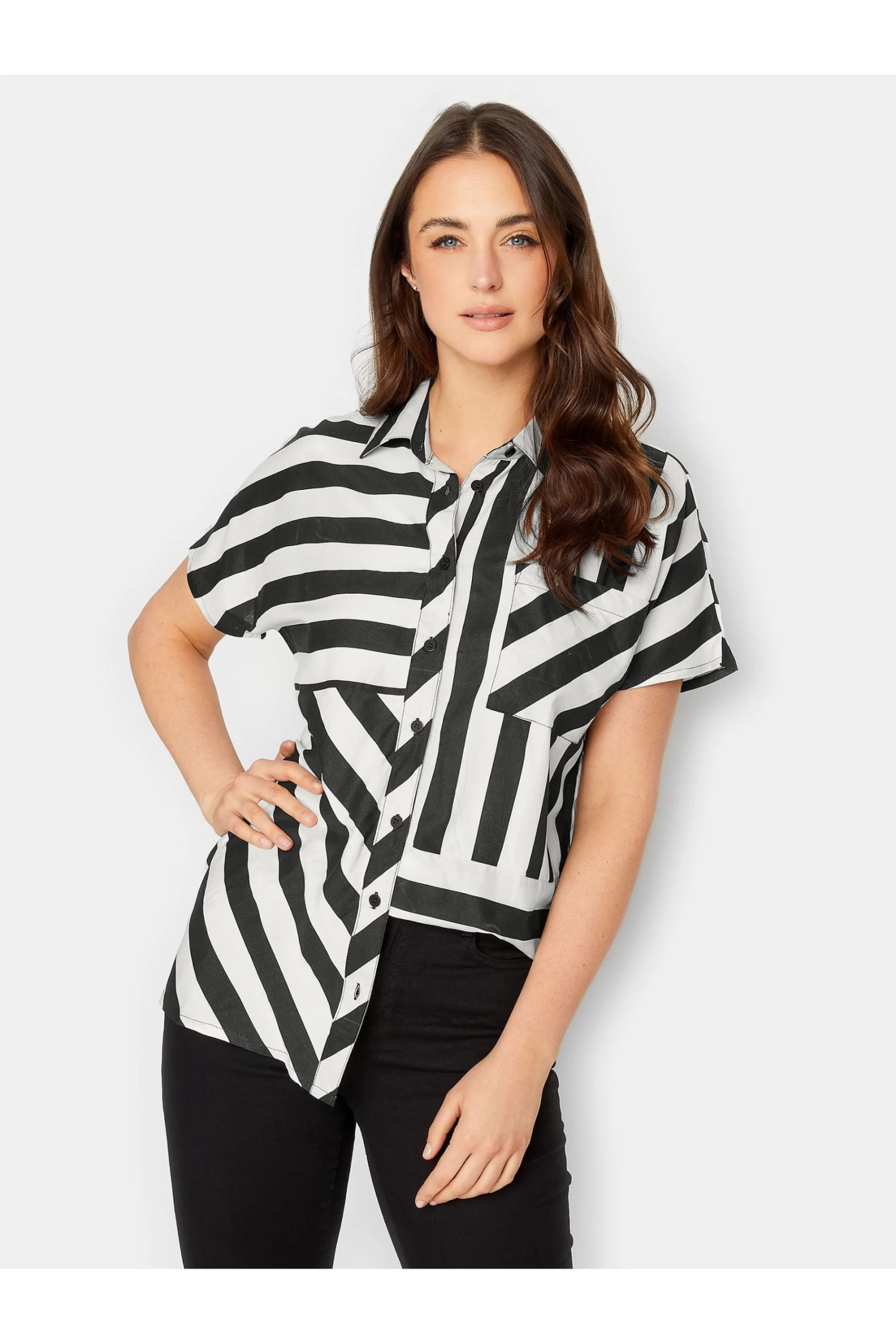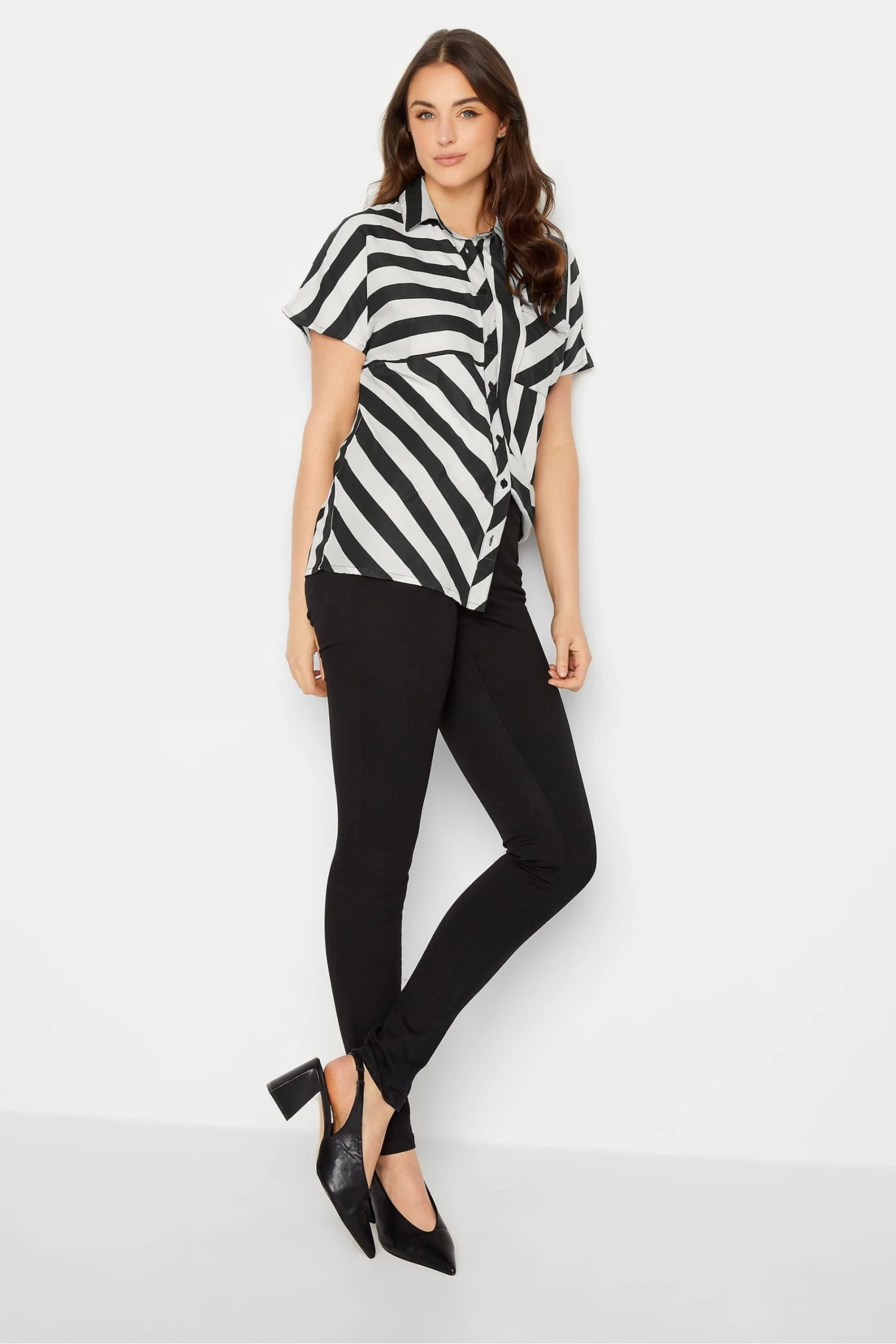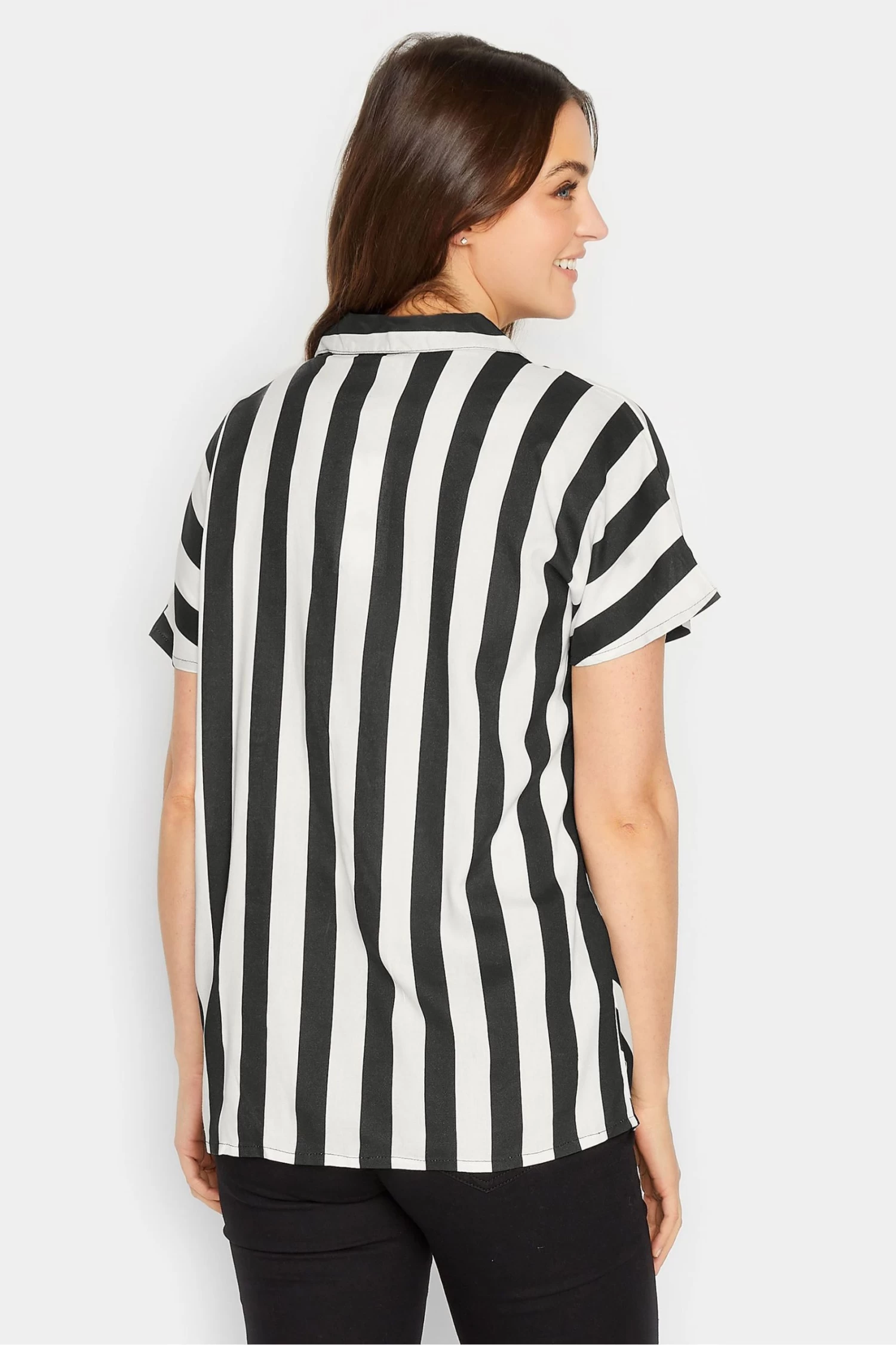 Long Tall Sally offers products for women 5’8” and over. At Long Tall Sally, our tall clothing is designed to fit and flatter tall frames throughout, available to shop in UK sizes 8-28 and up to a 38″ leg. The perfect shirt that will take you from work to the weekend and beyond. Made from a comfortable woven fabric, it features short sleeves, a classic collar, button-through fastening and a chest pocket, complete with a stripe design. Style with jeans and heels for a smart casual look.