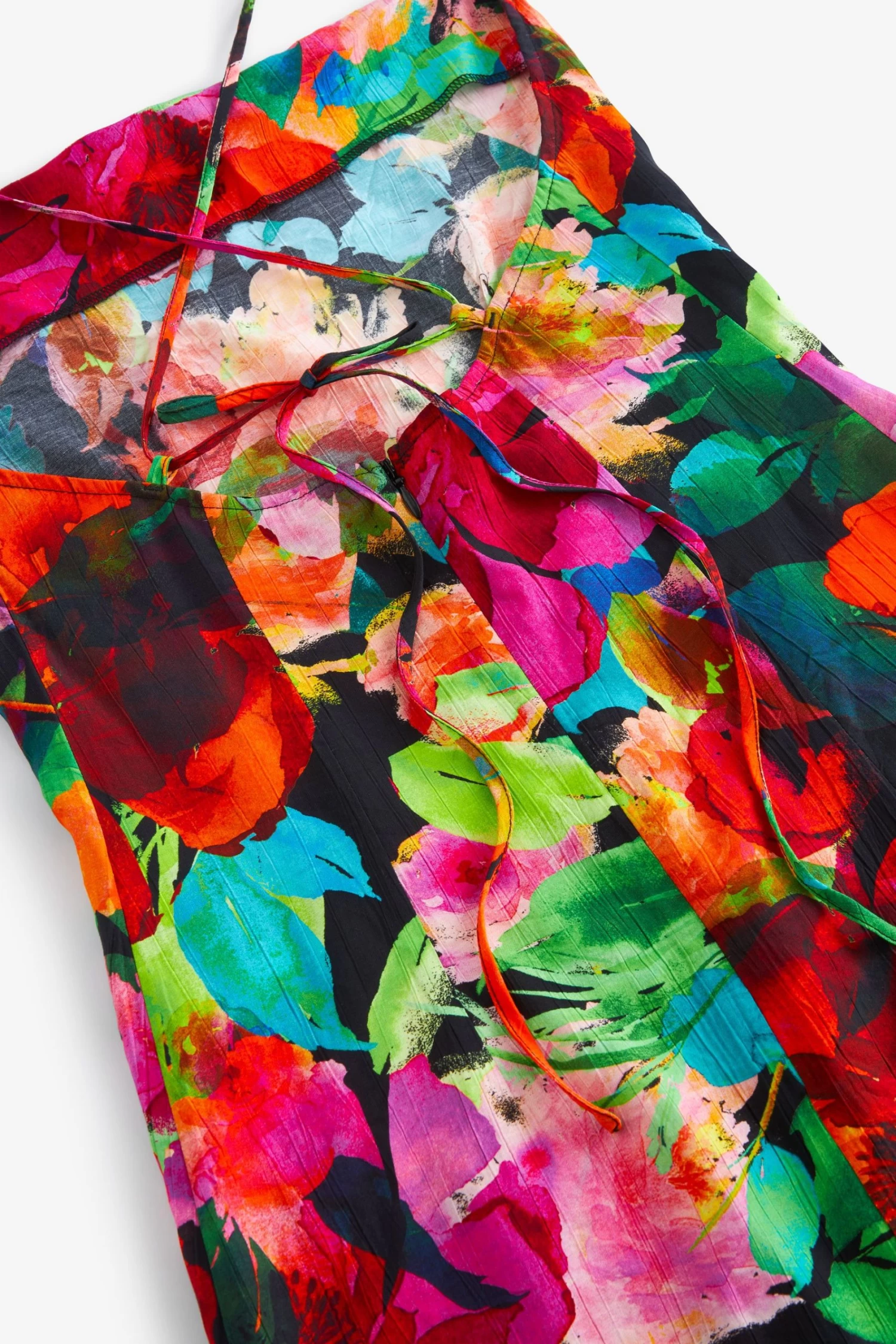 Meet your new favourite holiday dress from Myleene Klass. Bursting with colour, this viscose blend slip dress boasts a stunning floral print on a classic black base with tie up skinny straps that crossover at the back that are fully adjustable for the perfect fit. Ideal after a day on the beach, team this showstopper with heels and some gold jewellery for a stylish evening outfit.