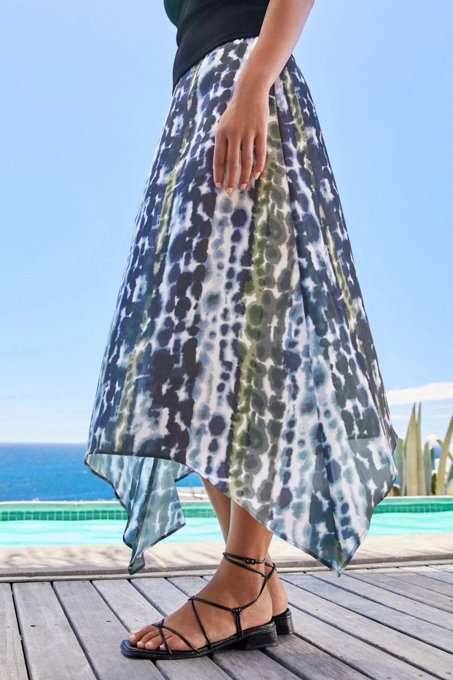 Next Blue Tie Dye Hanky Hem Midi Skirt