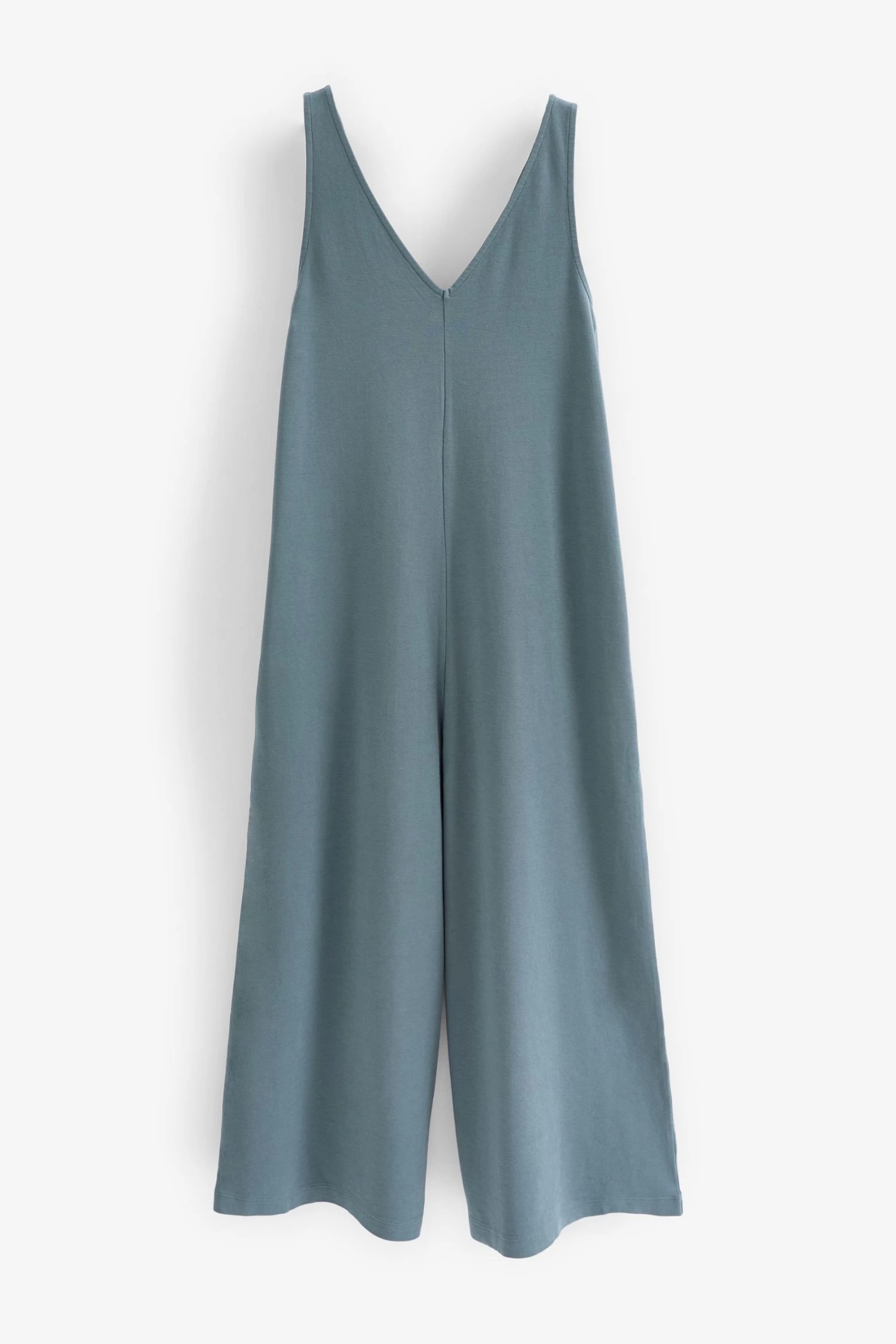 In a soft cotton jersey, this flattering v-neck jumpsuit will quickly become a wardrobe staple. Designed with a wide leg and functional pockets.
