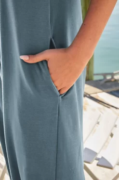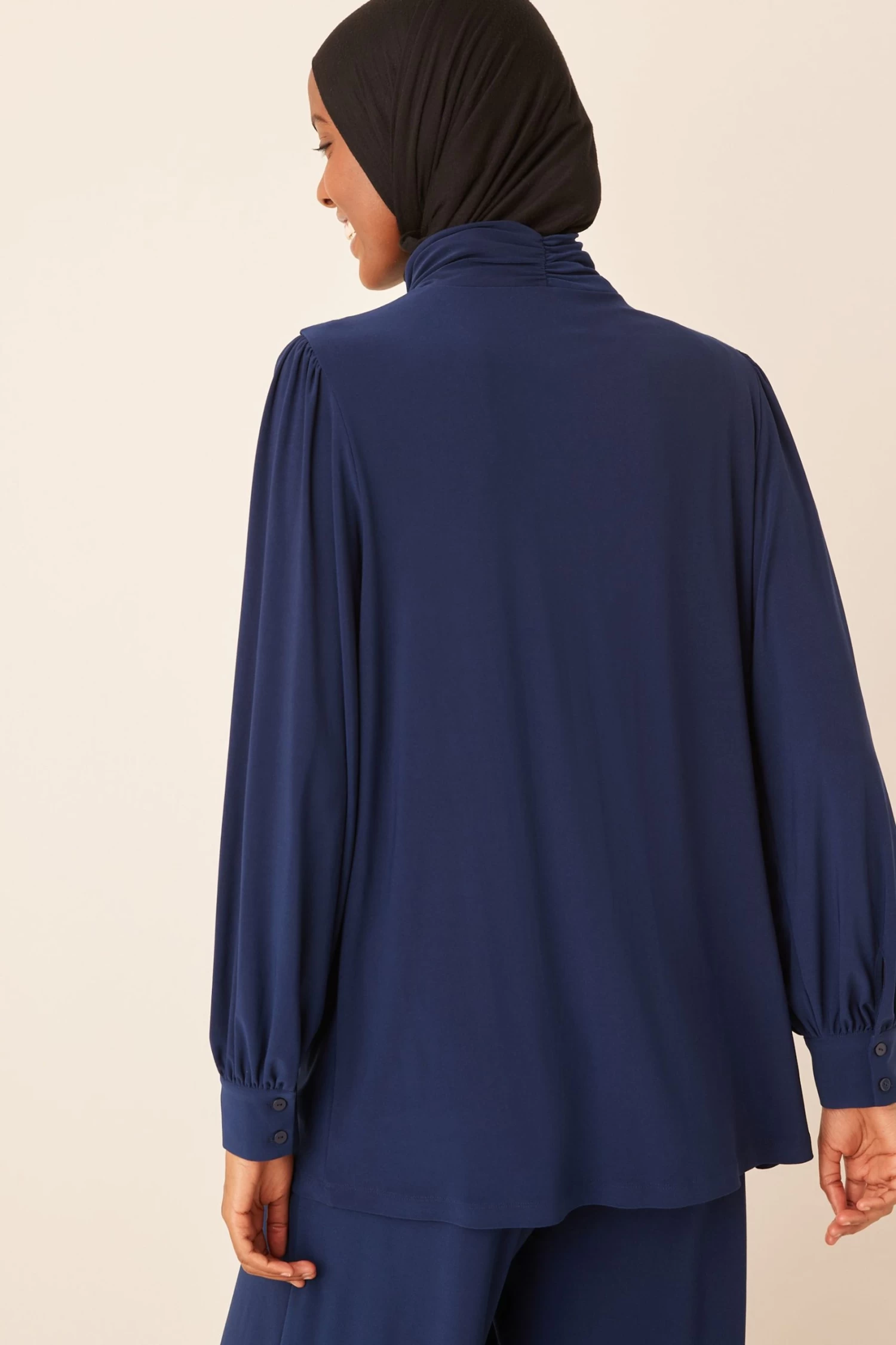 Next Navy Blue Knotted High Neck Long Sleeve Longline Top