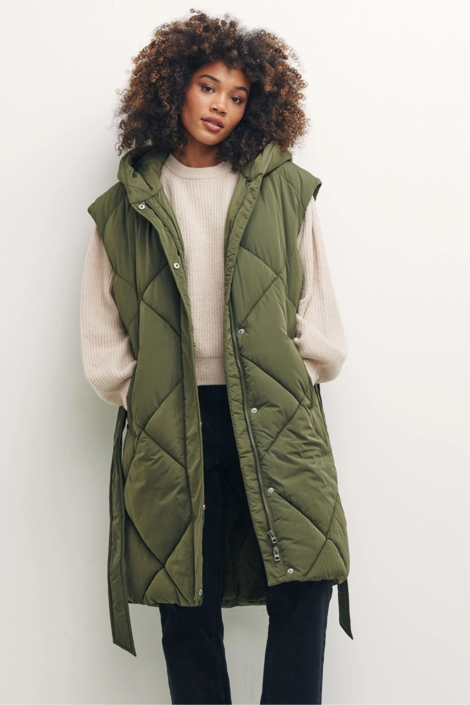 Nobody’s Child Green Caroline Longline Diamond Quilted Puffer Gilet