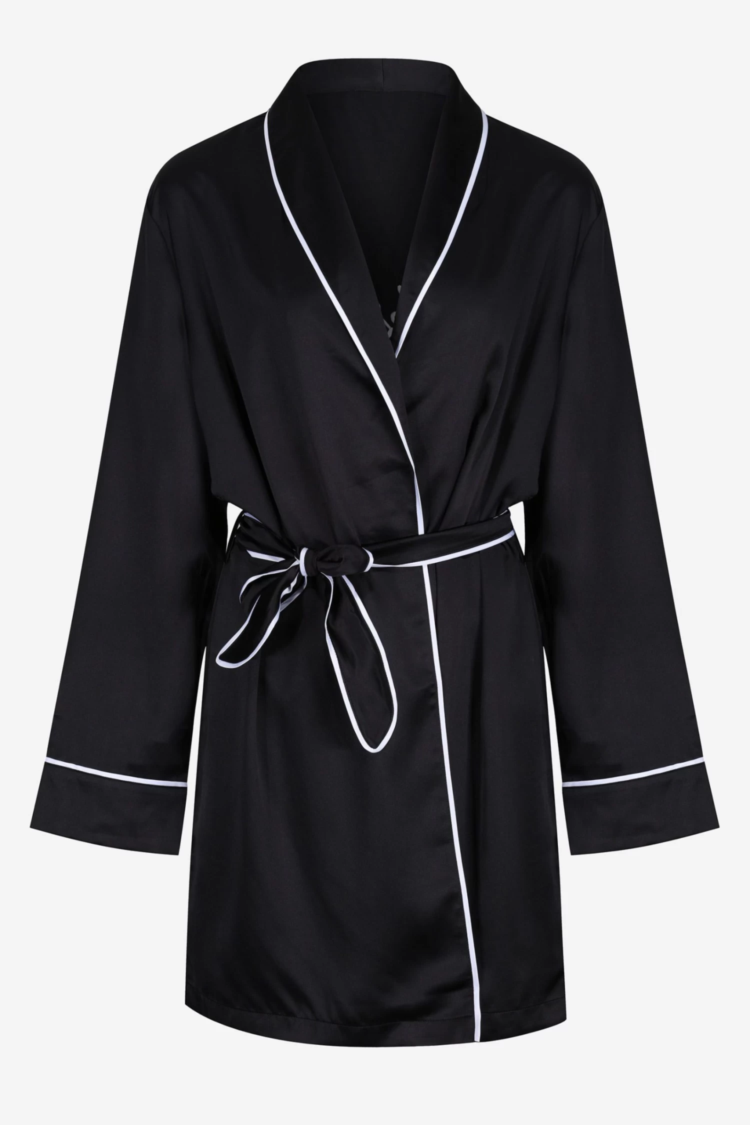The HA Signature classic robe personalised for that important member of your bridal party. Made from our woven satin finish fabric in a regular fit, it features a contrast piped shawl collar and self-tie fabric belt which can be cinched at the waist, flattering any silhouette. For a small additional cost, further personalisation can be added to the chest.