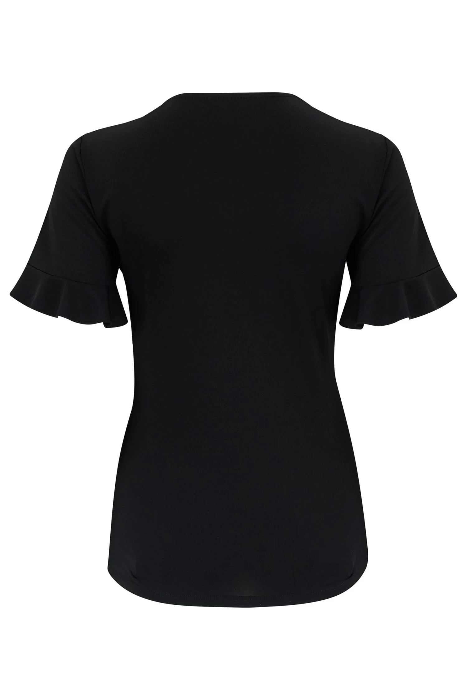 Update your basics with the Bryony Slinky Short Sleeve Wrap Top. Designed with a flattering V-neckline and wrap top to compliment your figure. Finished with beautiful frill detailing for a playful and feminine look. We take the impact that our business has on the planet seriously that is why the Bryony Slinky Jersey Short Sleeve Wrap Top is made from recycled materials.