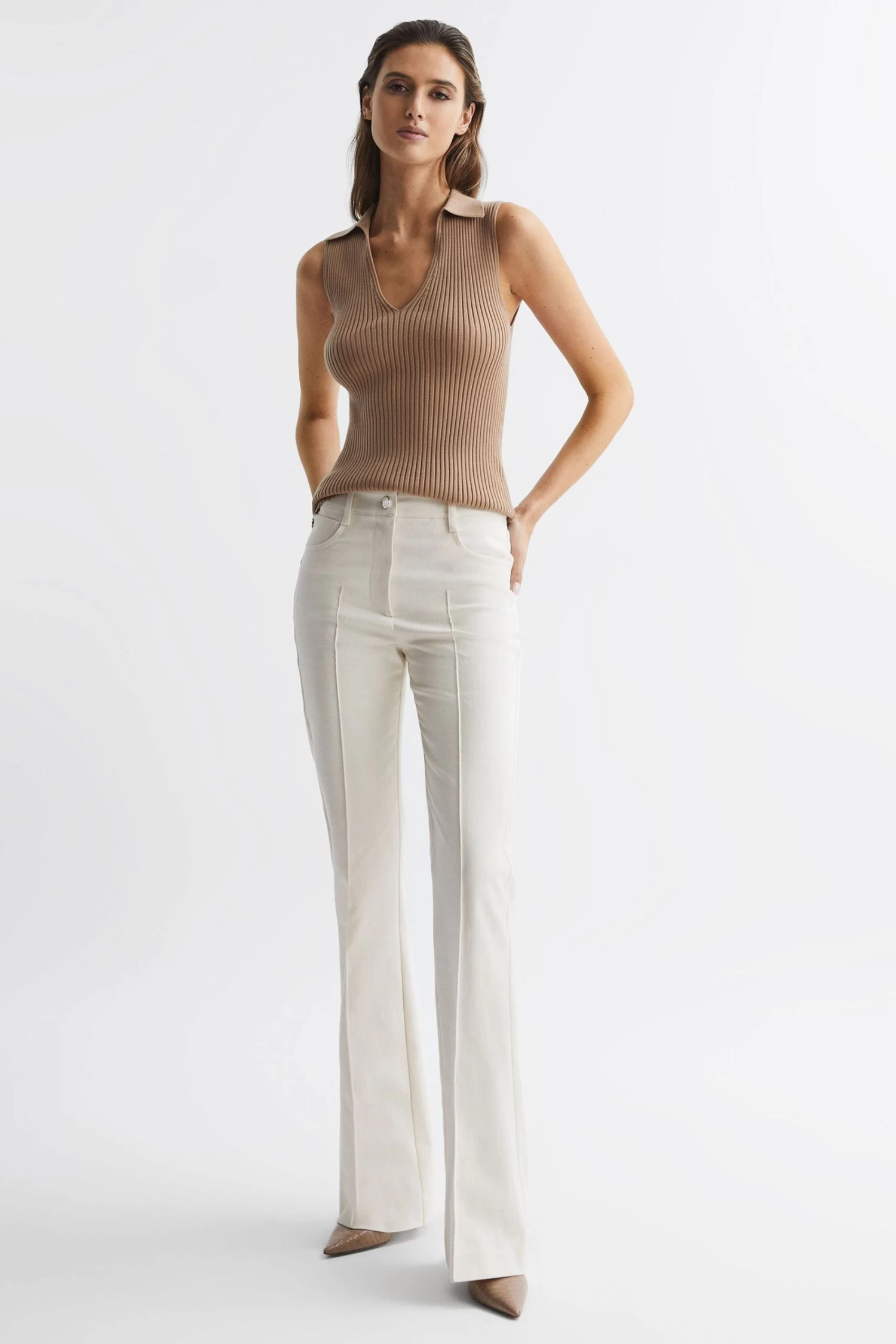 Choose the camel Izzie top for the smart-casual plans on your calendar. It’s crafted from a ribbed fabrication and fitted with a collared V-neckline which subtly showcases the chest. Its sleeveless style lends it to warm-weather wear. Tuck into shorts or high-rise trousers to complete the edit.