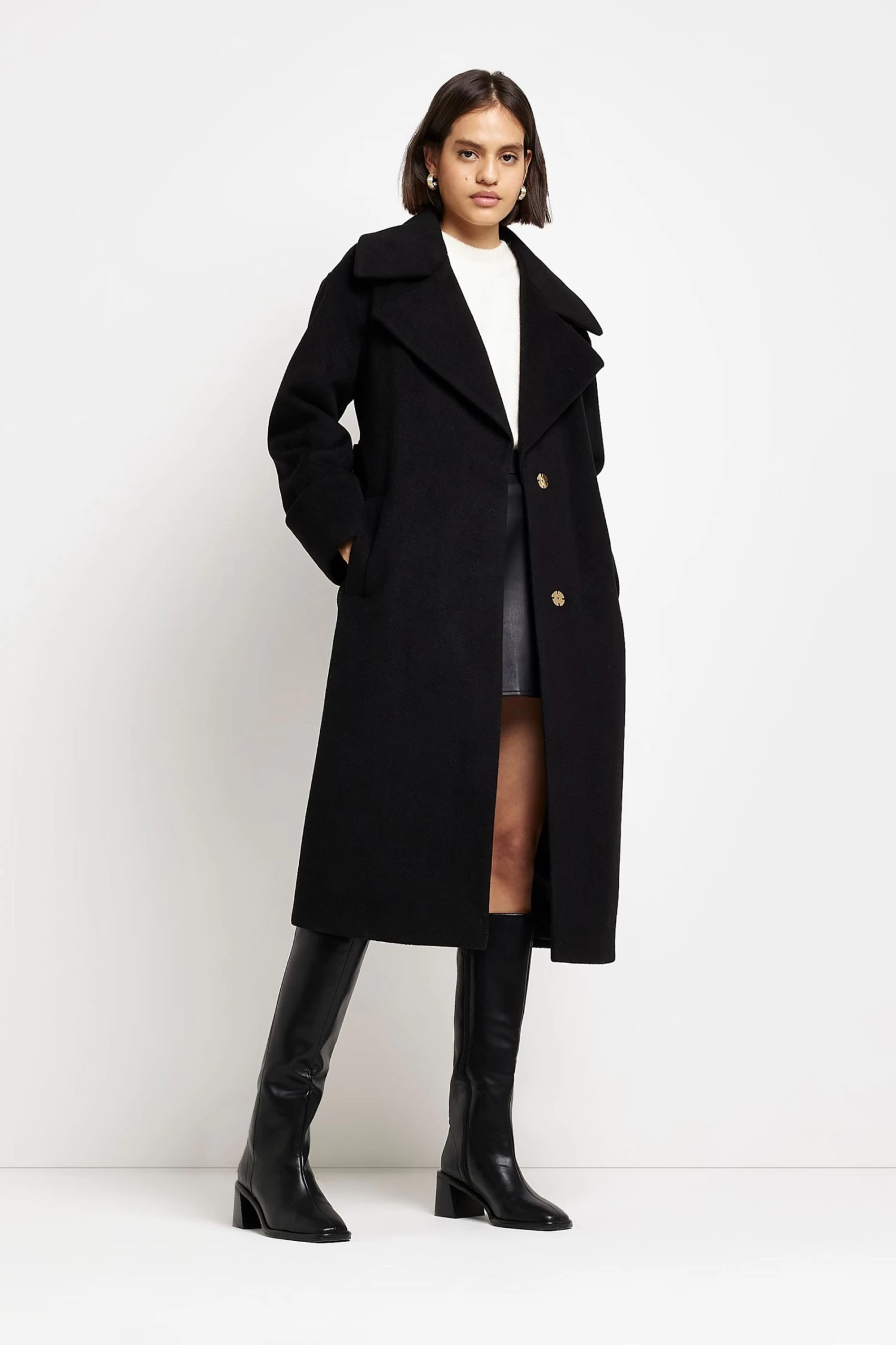 River Island Black Belted Robe Coat