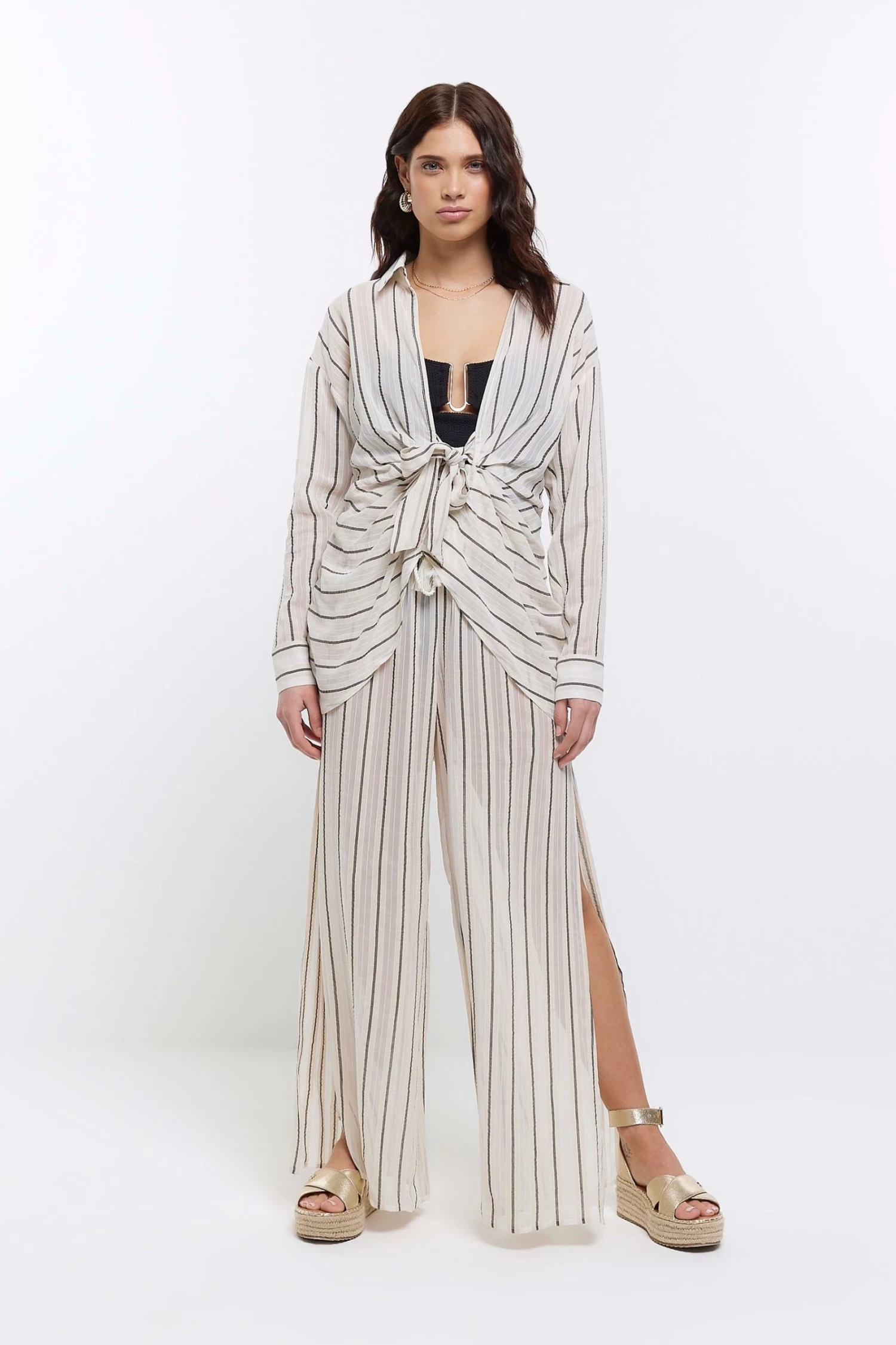 River Island Brown Stripe Palazzo Trousers