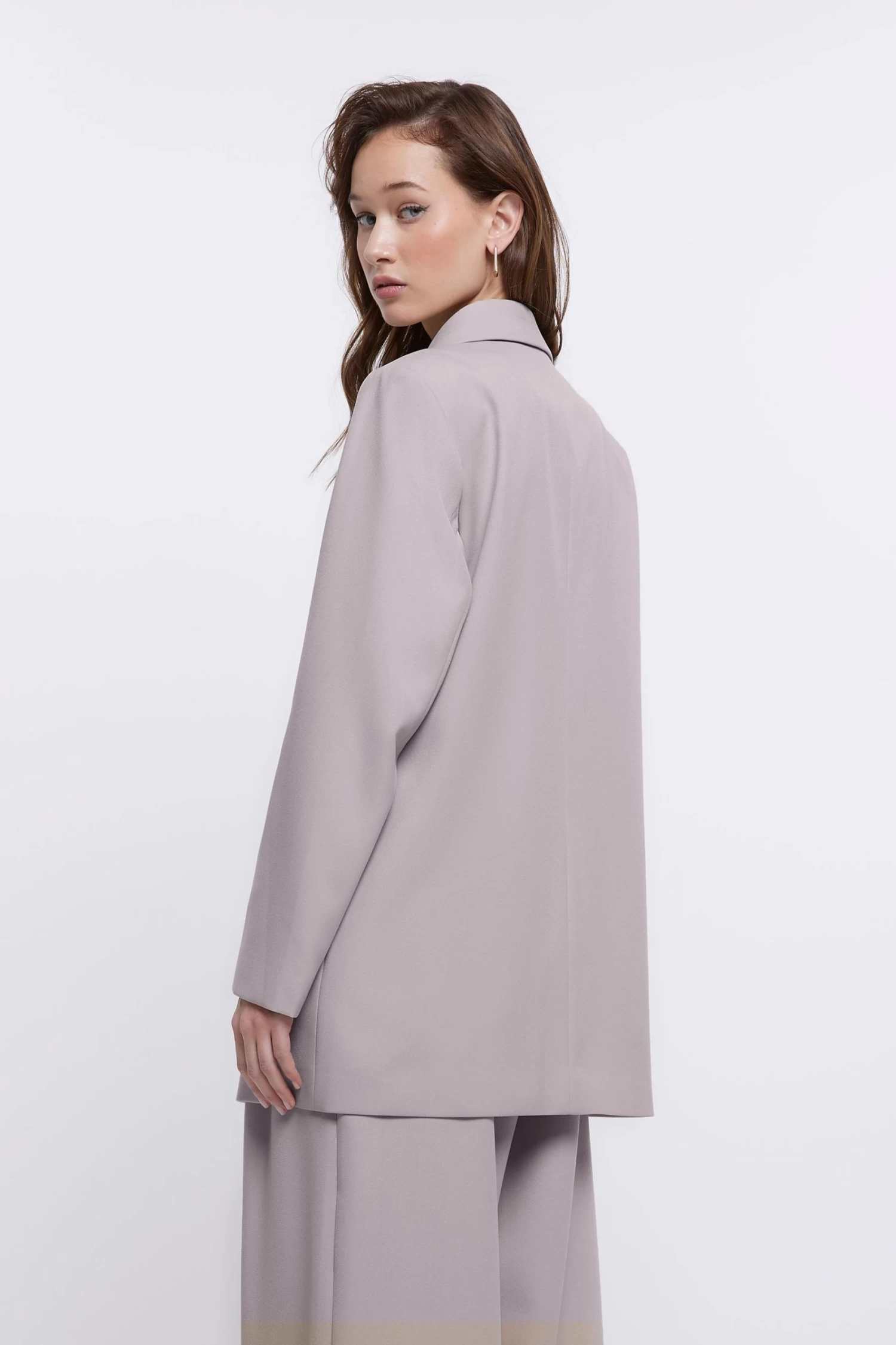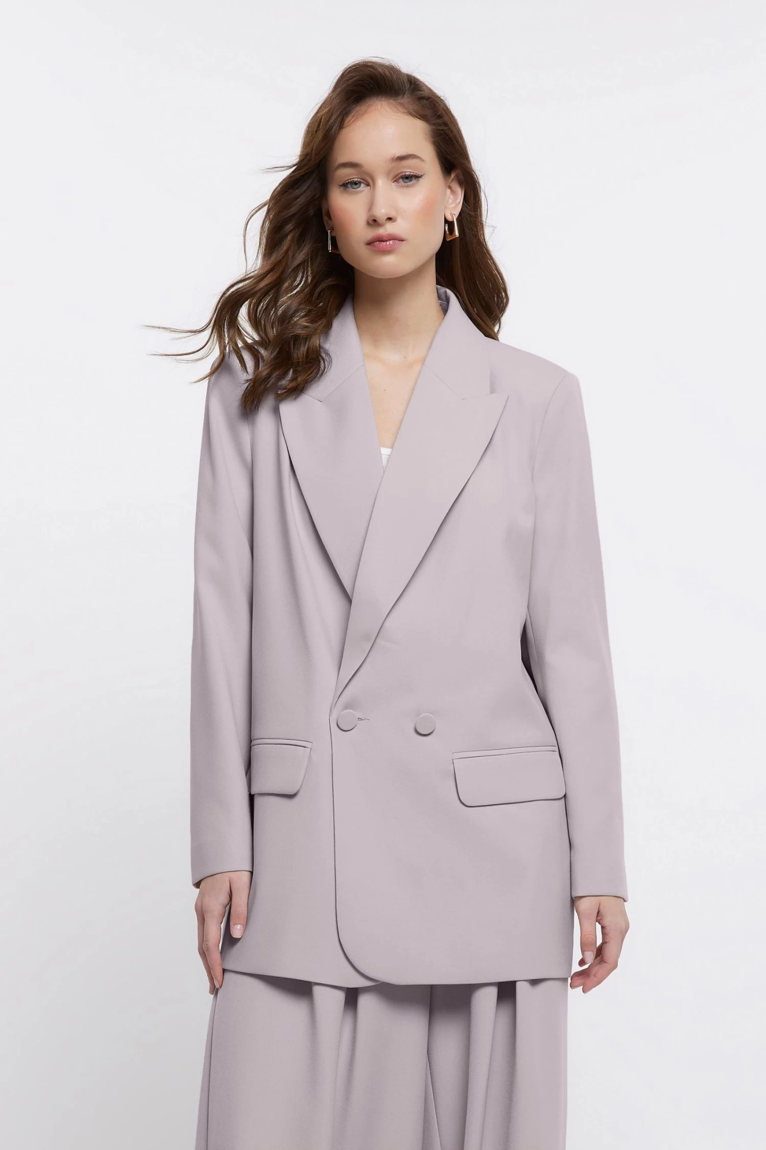 Double-breasted. Notched lapels. Long sleeves. Button fastening.