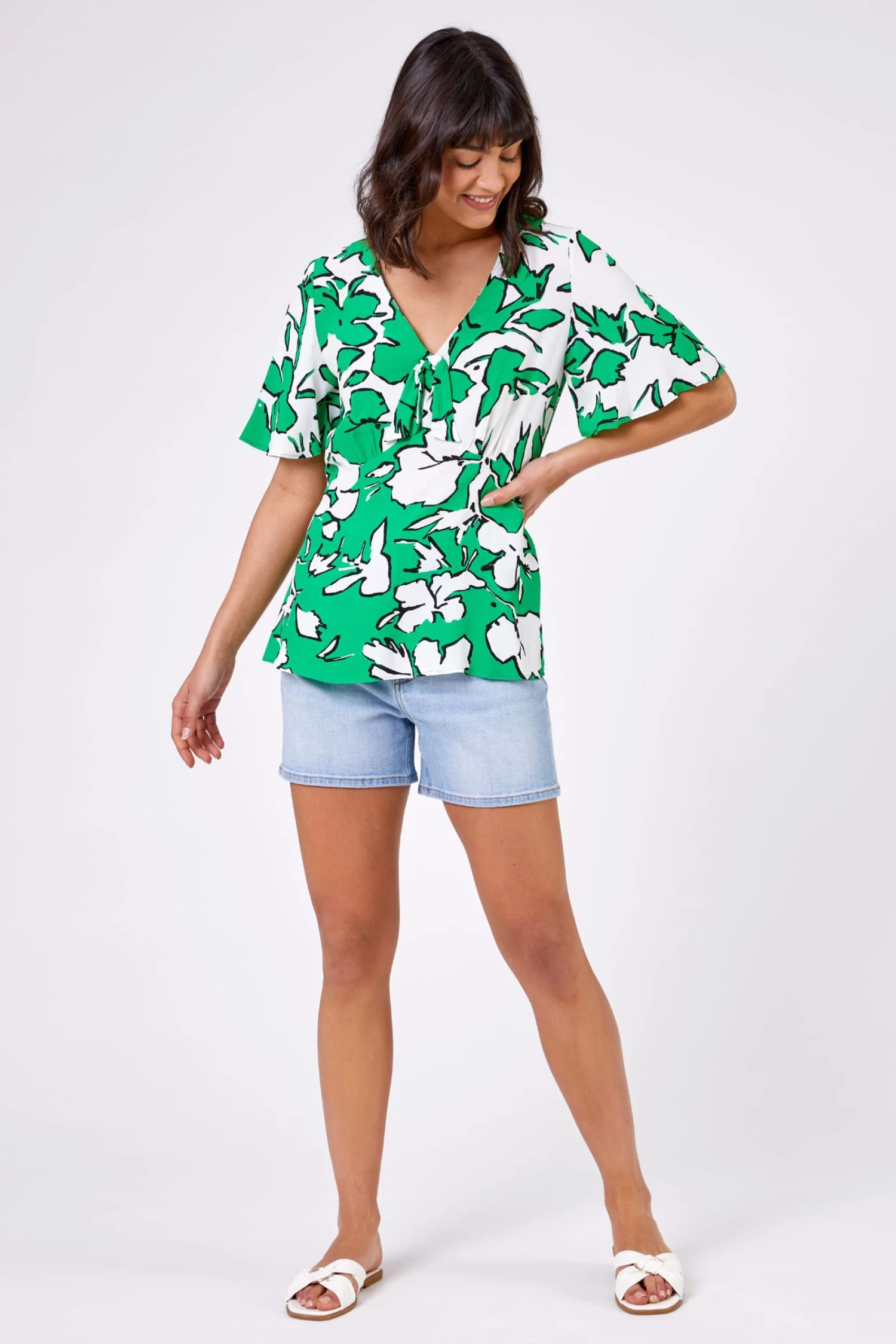 Update your denim collection with these trendy high-waisted shorts. Fastened with a button fly to the front and additional belt loops, these patch pocket shorts are perfect for packing in your suitcase for your next holiday. Cut from a soft stretch woven material, this high waist piece will keep you cool and comfortable for an everyday wear. Pair yours with sandals and a printed T-shirt for a pretty in print look to take you from beach to bar in seconds.