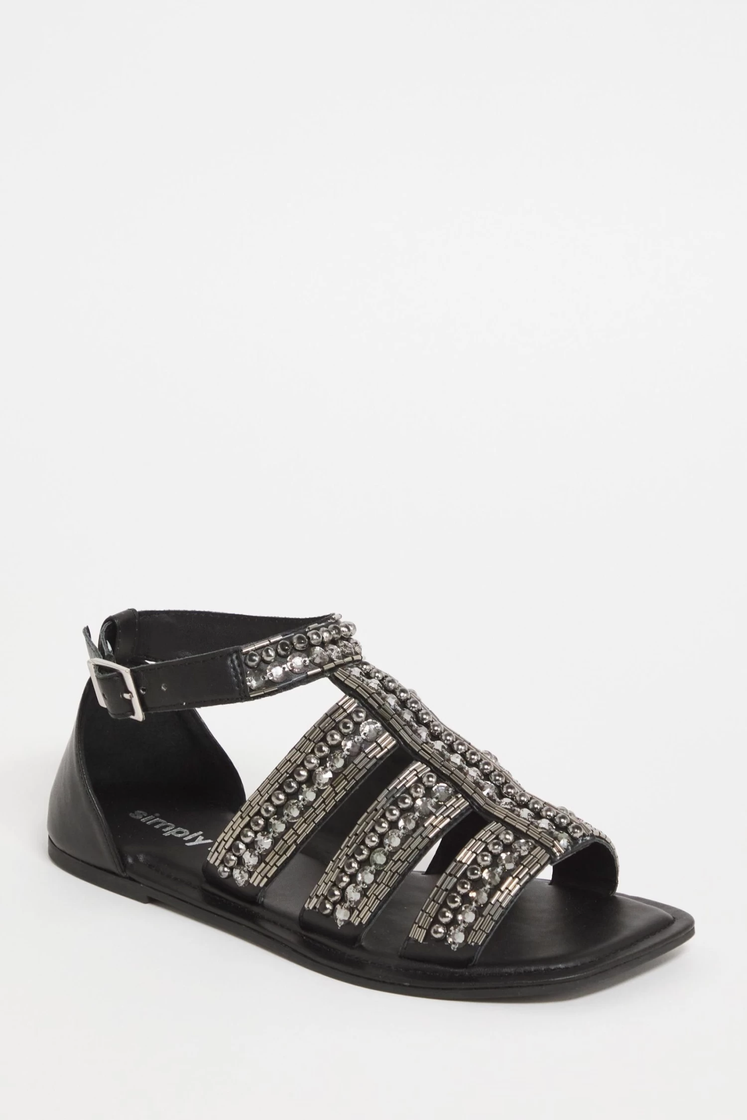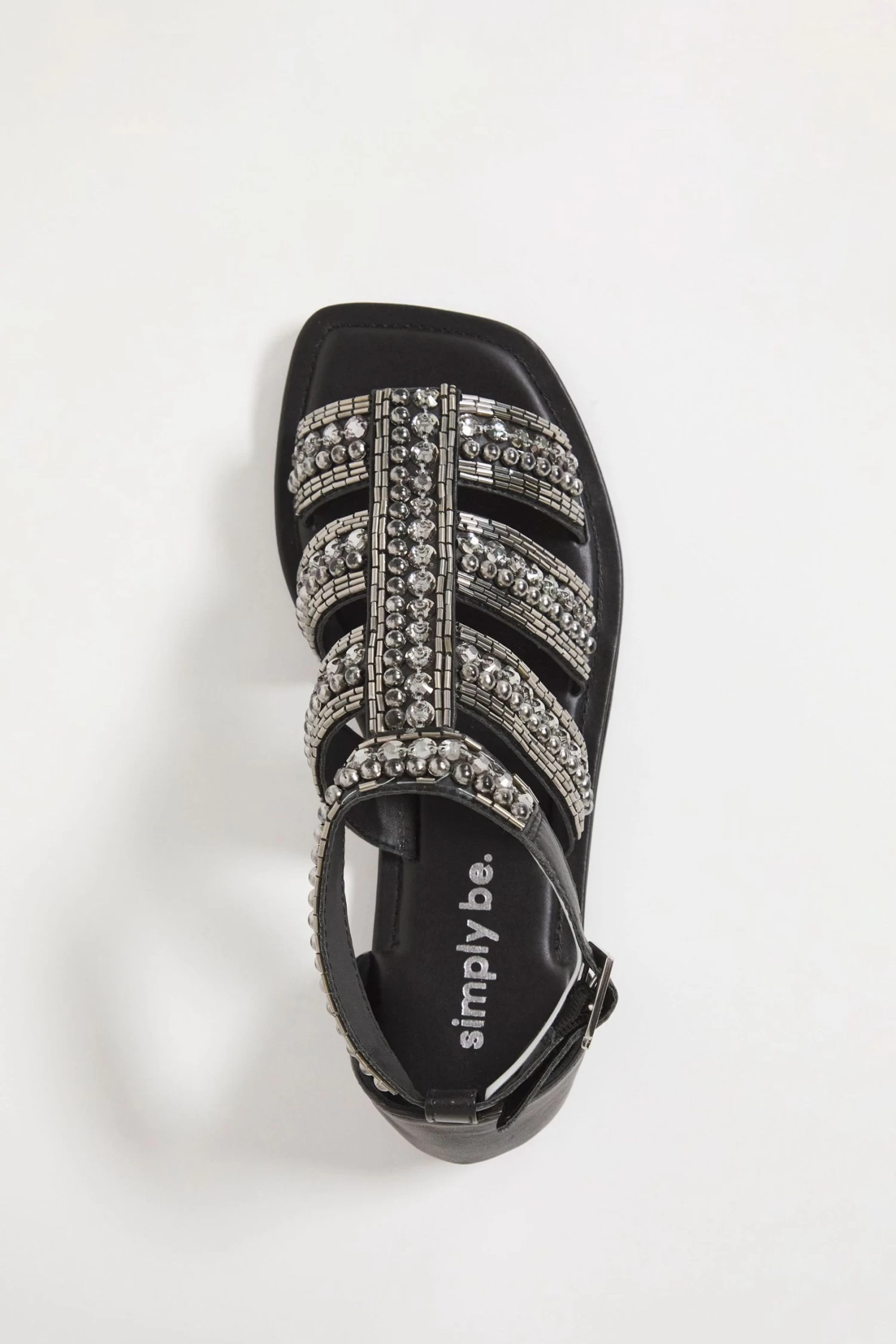 Simply Be Wide Fit Beaded Embellished Black Flat Sandals