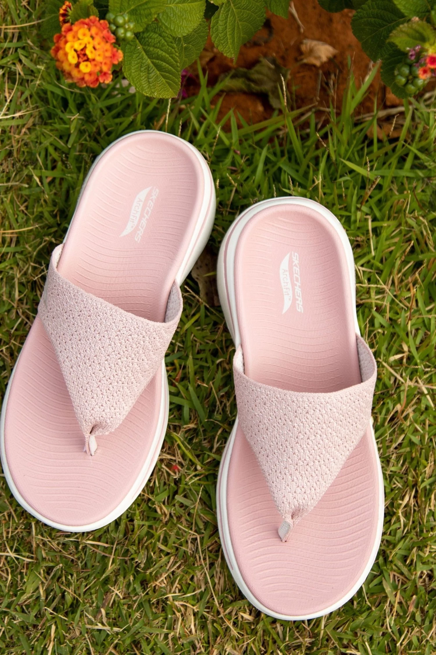 Walk in all-day comfort during warm-weather days with Skechers GO WALK Arch Fit® – Weekender. This thong sandal features a knit mesh upper with a supportive Arch Fit® contoured footbed and lightweight, responsive ULTRA GO® cushioning.