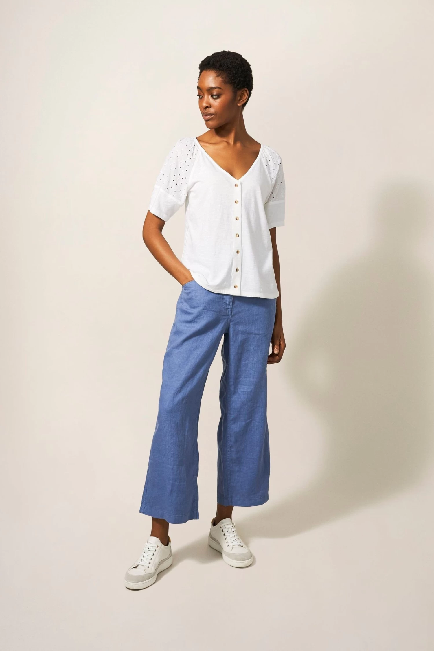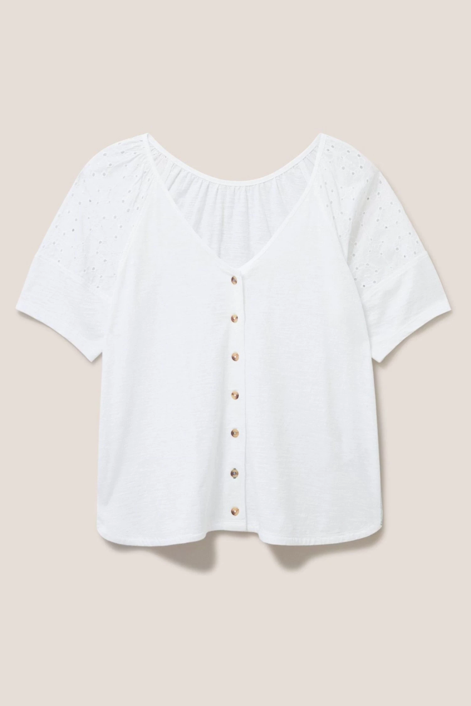 Wear this top with the buttons to the front or back, V-neck or crew neck. That broderie is a dreamy addition, any way you look at it.