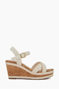 Dune London Kelisa Braided Upper High Wedge Heel White Sandals